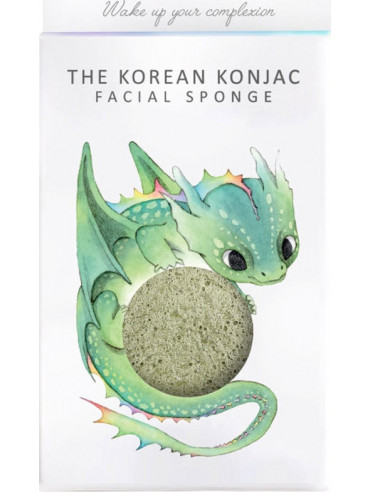 Face Sponge from Pure Konjac and Green Clay with Dragon Design Hook!..