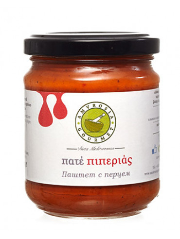 Kόκκινες πιπεριες (50%), λιαστή τομάτα (30%), έξτρα παρθένο ελαιόλαδο, ζάχαρη, αλάτι, καρυκεύματα, ηλιέλαιο.