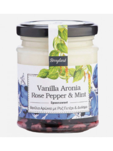 Πιο συγκεκριμένα, με τη στυφή-μεστή γεύση της Αρώνιας, το ντελικάτο-σπινθηροβόλο Ροζ Πιπέρι & τον δροσερό-ευωδιαστό Δυόσμο.