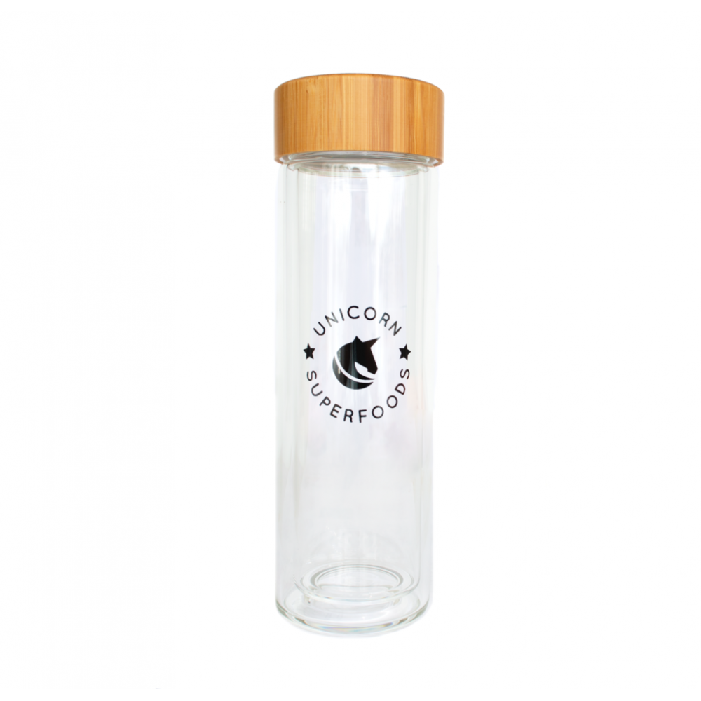 Προσθέστε φρέσκους χυμούς, τσάι, καφέ ή οποιοδήποτε άλλο δροσιστικό ποτό στο κομψό γυάλινο μπουκάλι διπλού τοιχώματος. Συνδέστε το με τις σούπες μας για να δημιουργήσετε ζωντανά χρωματιστά ποτά με θρεπτικό χτύπημα.