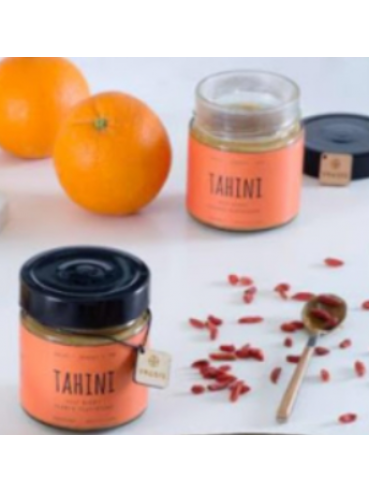 Ταχίνι, goji berries, μέλι και 100% αγνό βρώσιμο έλαιο πορτοκαλιού.